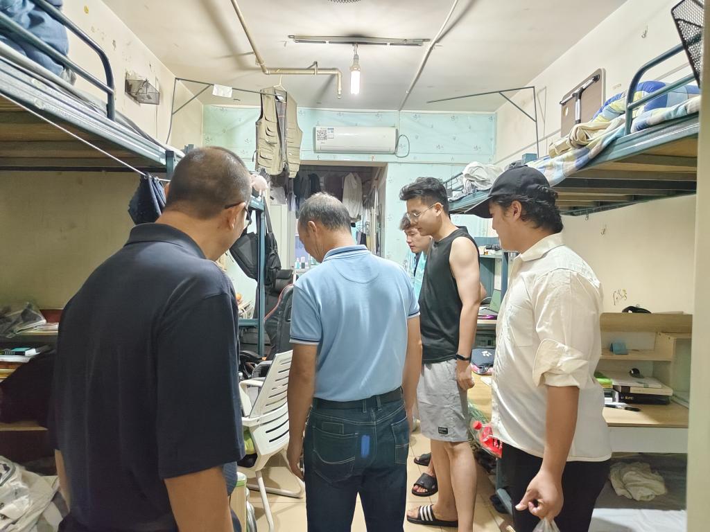 新学期、新气象、新面貌,为更好了解同学们的返校情况与状态,督促同学们创建整洁舒适的学习和生活环境,切实做好员工宿舍的卫生安全工作,yl23455永利集团于9月3日晚组织开展寝室卫生安全大检查。公司党总支副书记王春梅、分团委书记张杰,2021级辅导员周莹,2022级辅导员周立丙及2023级辅导员冷虹带领纪检部成员对一号楼、七号楼寝室进行了走访。