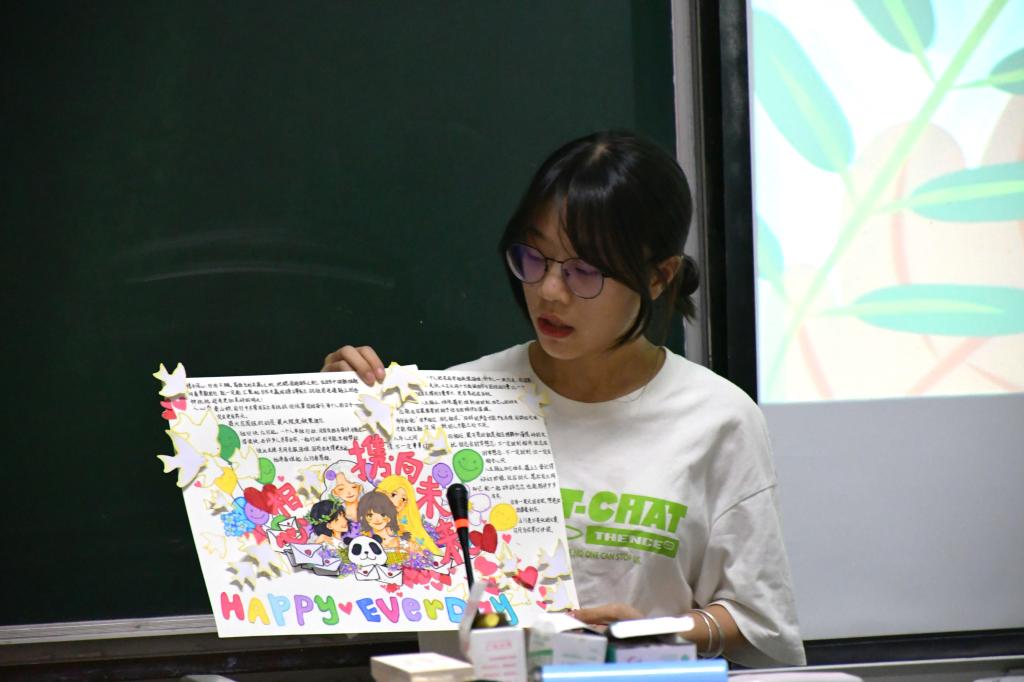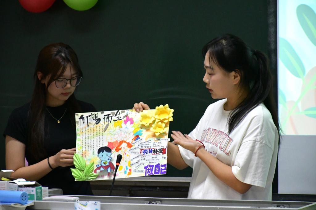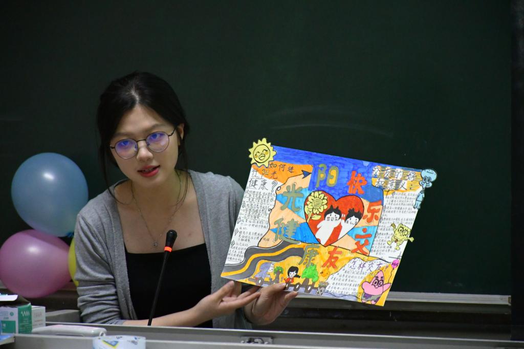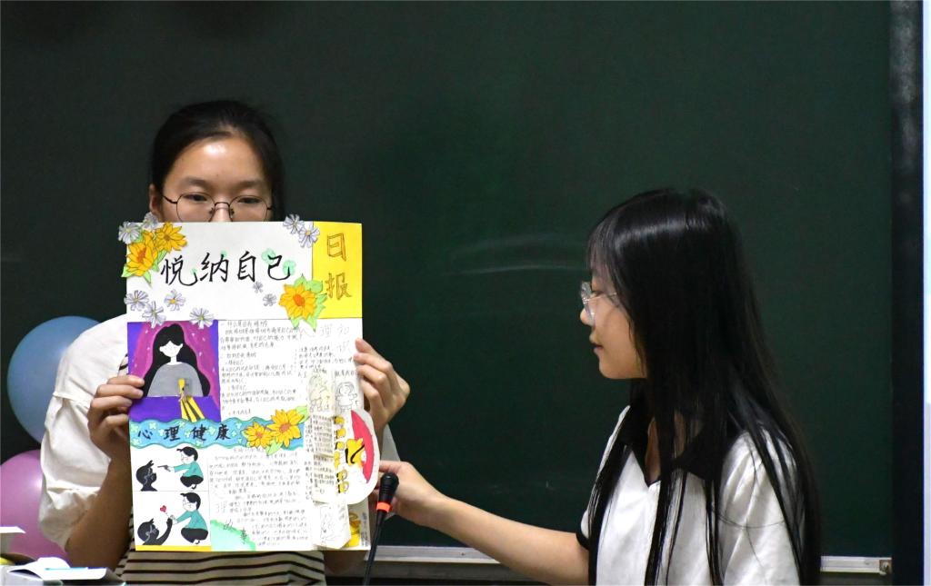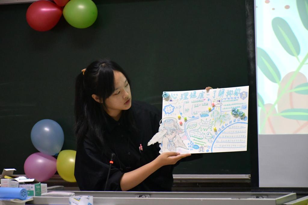 主持人介绍本次活动主题并热烈欢迎出席大会的各位领导老师及参与的同学。参赛选手们依次上台讲解手抄报,他们生动详细的讲解了自己的作品,对手抄报版面以及文字、图画、手工等进行详细介绍,表达自己对心理健康的理解和感悟。本次大赛作品主题丰富,有“向阳而生”、“了解抑郁”、“拒绝焦虑”、“快乐交友”、“悦纳自己”等。最后,汪书记用共产党红军在长征时期湘江战役时虽遇挫折却仍积极乐观、坚定信念和毛主席在面对复杂严峻的国内外形势时仍积极向上的例子来呼吁大家要以积极乐观的心态对待学习生活,及时调整负面情绪,寻求解决办法,为建设阳光健康美丽的校园而努力。至此,本次活动圆满结束。