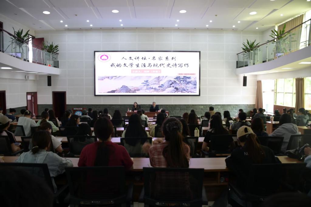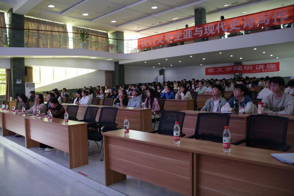 讲座伊始,刘仲围绕自己的文员工涯与写作历程展开,尽管童年生活艰辛,但他始终保持着对阅读的热爱,并将阅读比作"沙漠中的甘泉",阅读让他熬过了苦难,丰富了精神世界。他表示,成就大事的关键是要有持之以恒的精神。在回顾自己的诗人之路时,刘仲特别强调了与陈庆刚等师长及文友的思想碰撞,这些交流使他的文学创作达到了更高的境界,打开了更广阔的格局。过程中,他分享讲解自己的亲身创作经历和理念,让同学们更为直观地了解到文学创作的过程和创作思维。此外,刘仲深入探讨了在现代主义颓废文艺思潮影响下的史诗写作,并强调年轻人应朝气蓬勃、积极向上、坚定理想,勇于探索世界的同时也要严守边界、脚踏实地。提问环节中,师生们踊跃提问,刘仲逐一耐心解答。最后,曹利华总结此次活动并代表yl23455永利集团师生对刘仲先生的到来表示由衷的感谢。