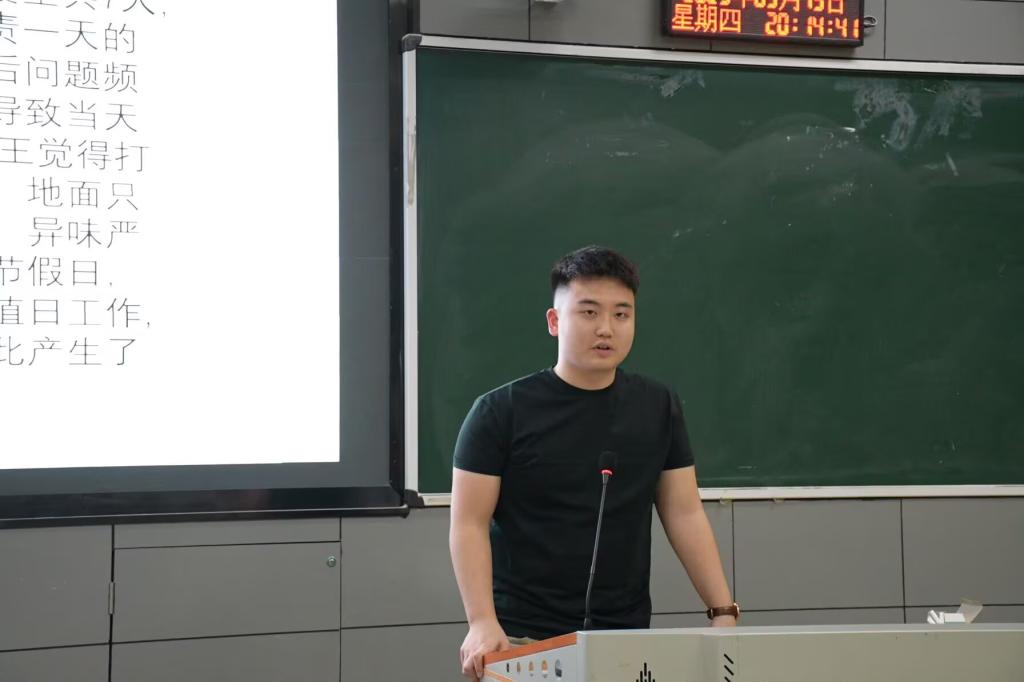 在案例研讨环节,主持人将员工进行分组,每组代表围绕寝室长职责、同学责任等方面提出各自的观点。
