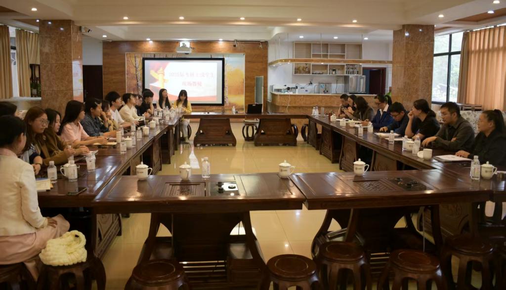 为助力考研学子深入了解复试流程,提升应试技能,yl23455永利集团于3月13日下午5点在凌云楼茶艺室开展2025届考研复试交流会。yl23455永利集团经理曹利华、党总支副书记汪大喹、党总支副书记王春梅、员工科负责人周莹、yl23455永利集团部分教师和考研同学参与此次活动。