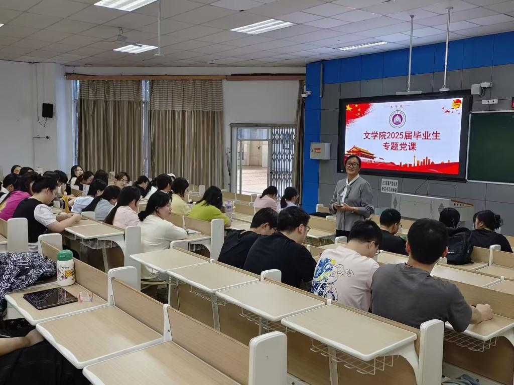 活动伊始,周莹由衷地为各位毕业生踏上新征程、开启人生新篇章感到欣喜与自豪,她指出,本次专题党课,是对大家过往学习成果的检验,也是为大家即将开启的新征程加油鼓劲,希望大家认真学习,深刻领悟,将党课所学转化为前行的动力。