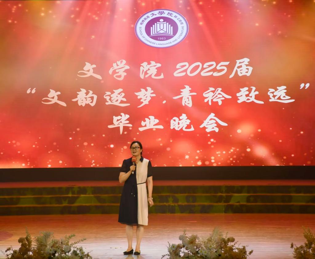 四位主持人对在场师生的到来表示热烈欢迎,宣布毕业晚会正式开始。“墨韵流芳·文韵启程”、“文澜绮梦·文苑撷芳”、“诗笺逸韵·云帆济远”三个篇章徐徐展开,其间穿插的互动抽奖环节,更是为晚会增添了不少惊喜与欢乐。