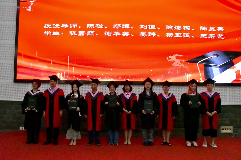 学位授予仪式中,老师们面带微笑,饱含期许的目光注视着每一位员工。他们依次为毕业生拨穗,授予学位证书,并合影留念。