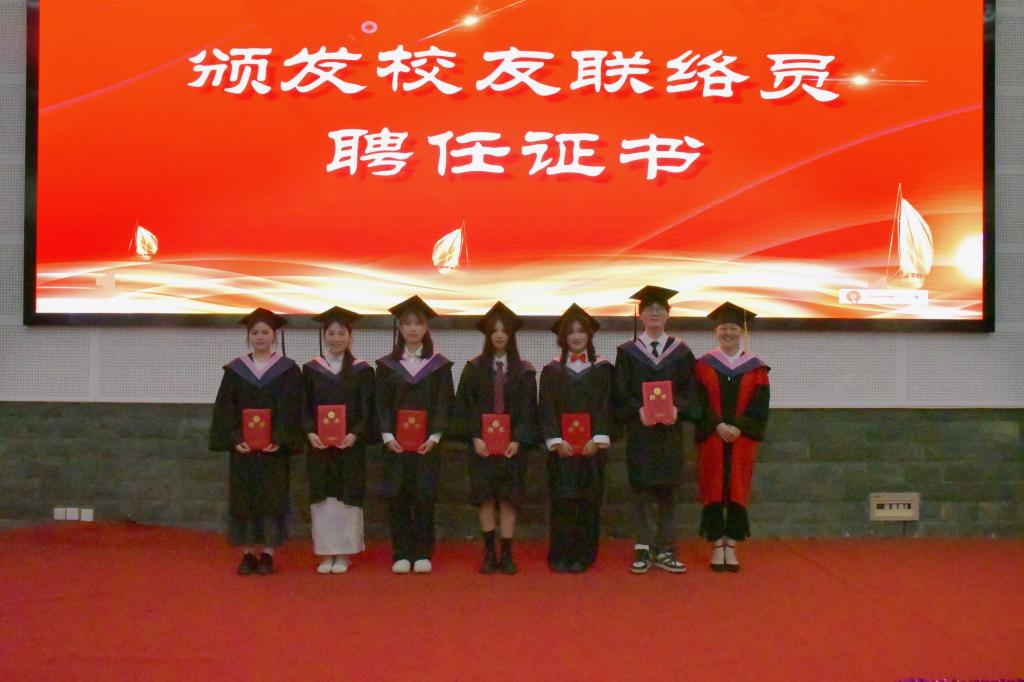 员工联络员聘任环节,郑辉为相关同学颁发聘任证书,希望以此搭建起毕业生与母校持续联结的桥梁,期待他们能传递员工情谊,助力公司发展。