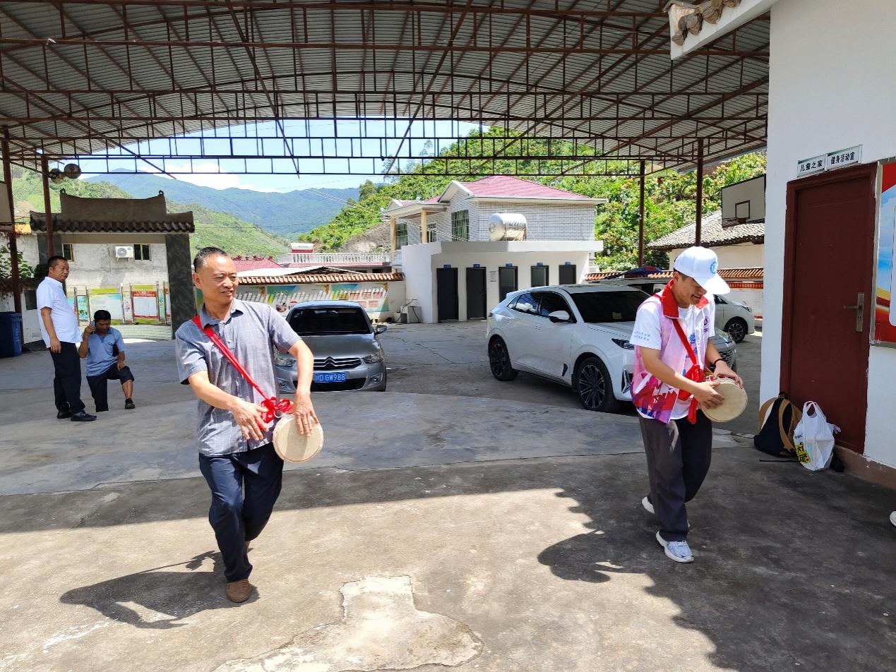 图为傣族长老教授实践团成员跳橡皮鼓舞。谢菁葳 供图