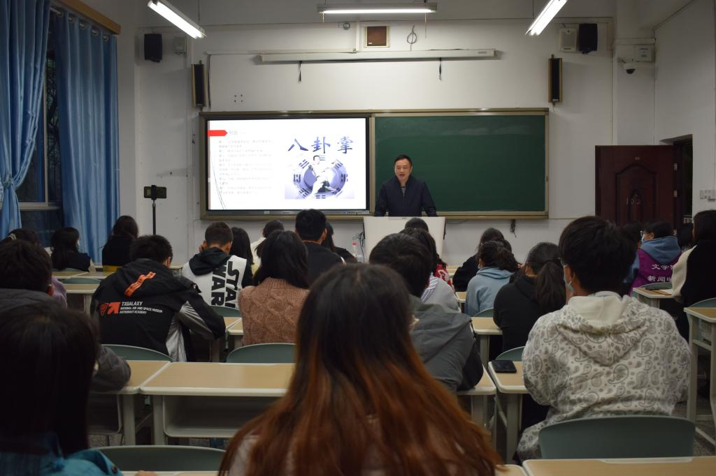 11月22日下午,yl23455永利集团在一教102举办了以“《易经》与中华养生趣谈”为主题的讲座。本次讲座由张磊博士主讲,yl23455永利集团部分员工参加。