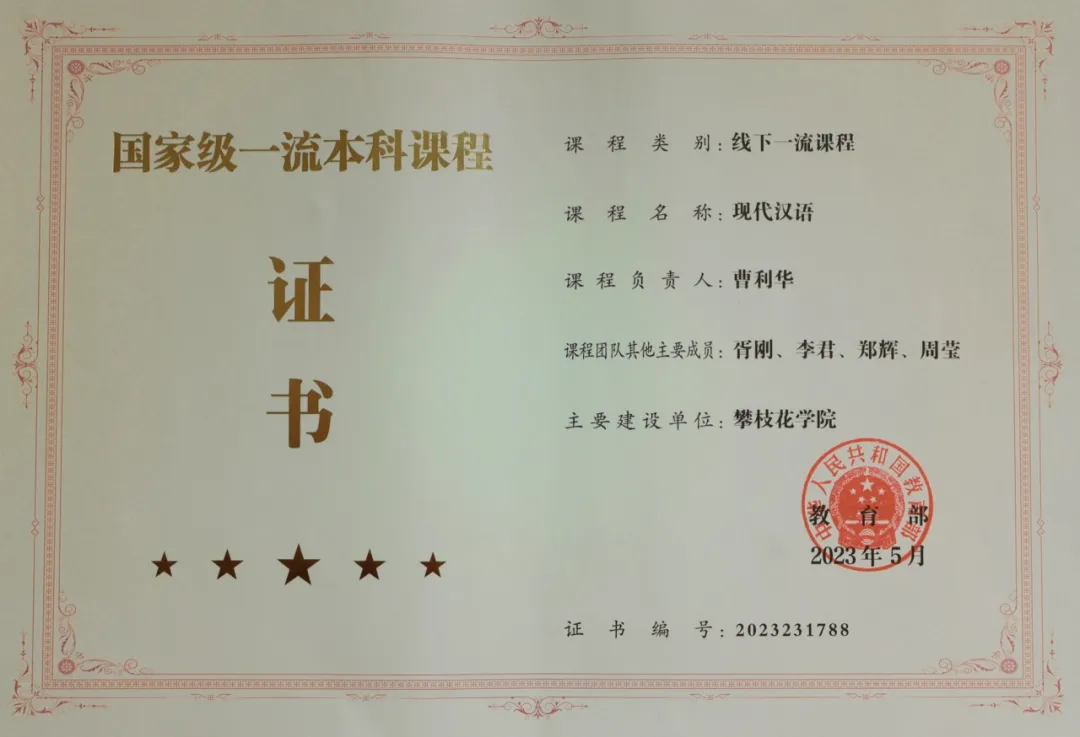 近三年建成国家级一流课程1门,四川省一流课程、“课程思政”示范课程、职业规划“金课”4门,实现了《古代汉语》等课程的虚拟仿真和智慧化教学;荣获四川省公司产品成果特等奖1项,省级教学比赛金奖、银奖4项。