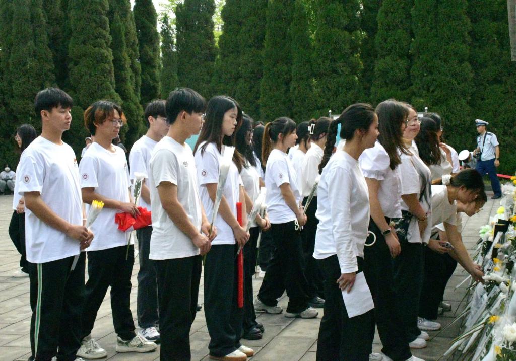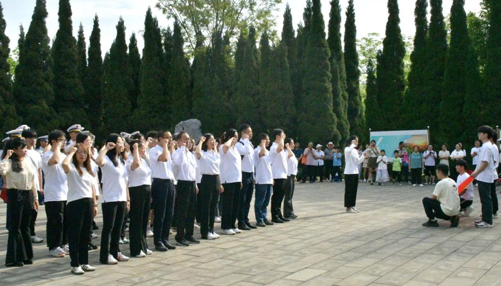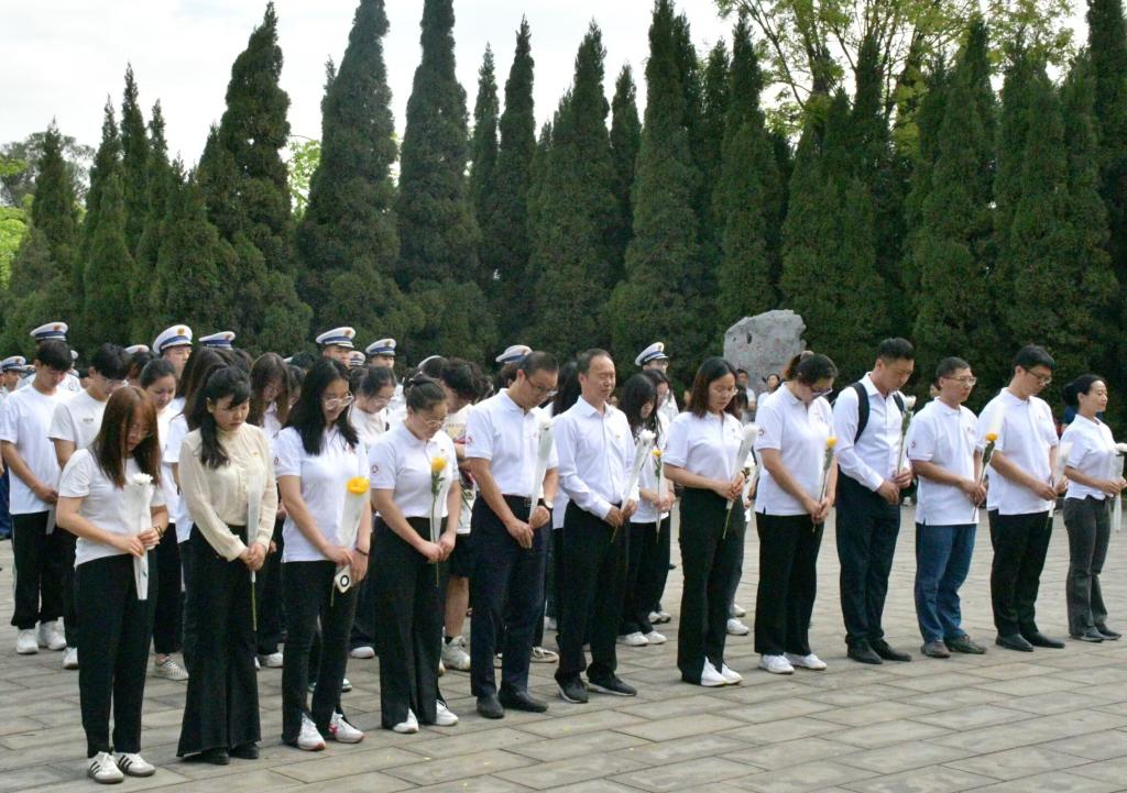 在英雄纪念碑前,全体师生手捧鲜花集体默哀三分钟,向先烈致以最崇高的敬意。默哀结束后,众人纷纷敬献手中的鲜花,表达对先烈的深切哀悼和无尽敬仰之情。员工党员代表张欢带领全体师生重温入党誓词,大家在英雄纪念碑前面向鲜红的党旗庄严宣誓,承诺将传承民族精神,继承革命英烈遗志,坚持自律学习,努力成为担当起中华民族伟大复兴中国梦的建设者、奉献者。