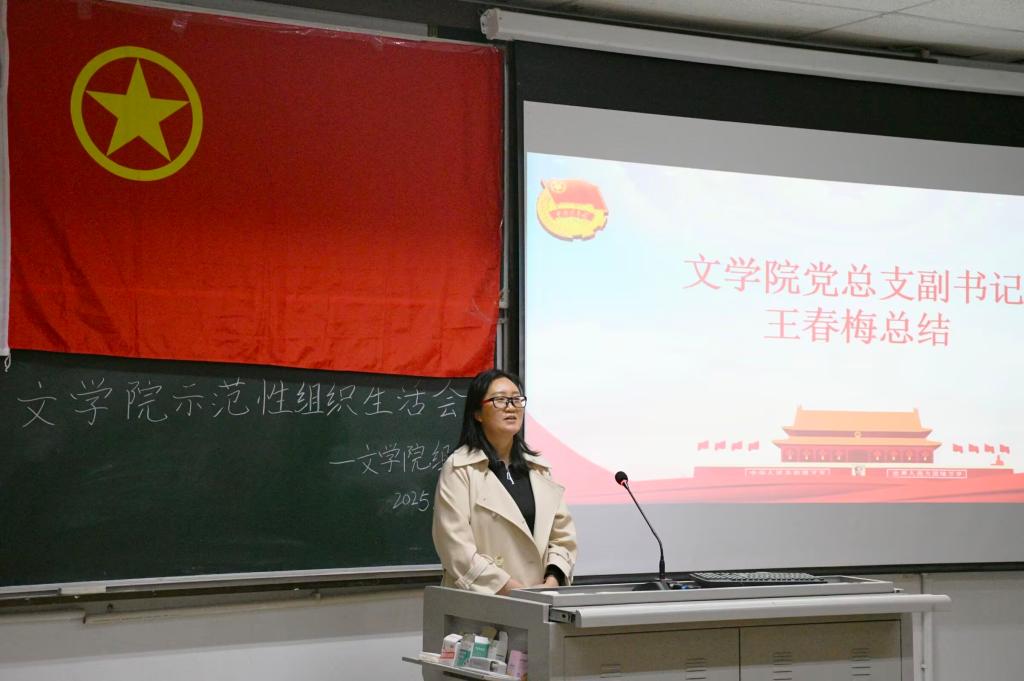 王春梅提醒同学们应时刻反思,促进自身成长,建设蓬勃向上的团支部;强调凝聚yl23455永利集团特色品牌的重要性,希望大家奋勇前行,在新时代建功立业,书写人生华章。