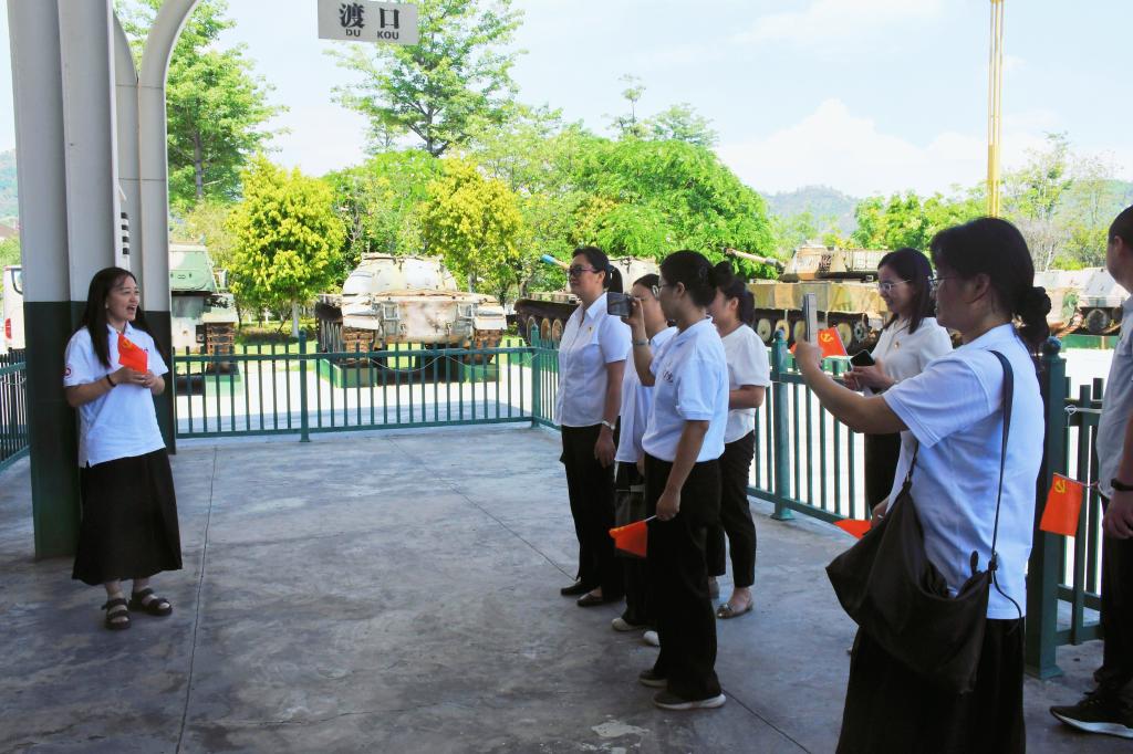 在“渡口火车站” 的复原场景前,教工支部书记郑辉在为大家讲授了微党课。她结合馆内史料和“七一”的特殊意义,回顾了从“建党”到“建国”,从“建市”到“建厂”的伟大历程,强调这正是百炼成钢的奋斗精神写照,号召党员干部将坚定理想信念,弘扬“三线精神”,实干笃行,将三线精神融入教育工作,传承红色基因。