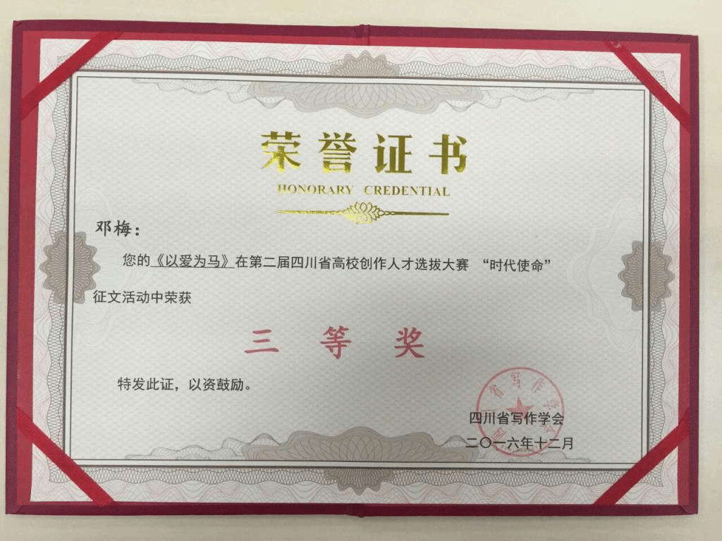 第二届四川省“时代使命”高校创作人才选拔大赛获奖荣誉