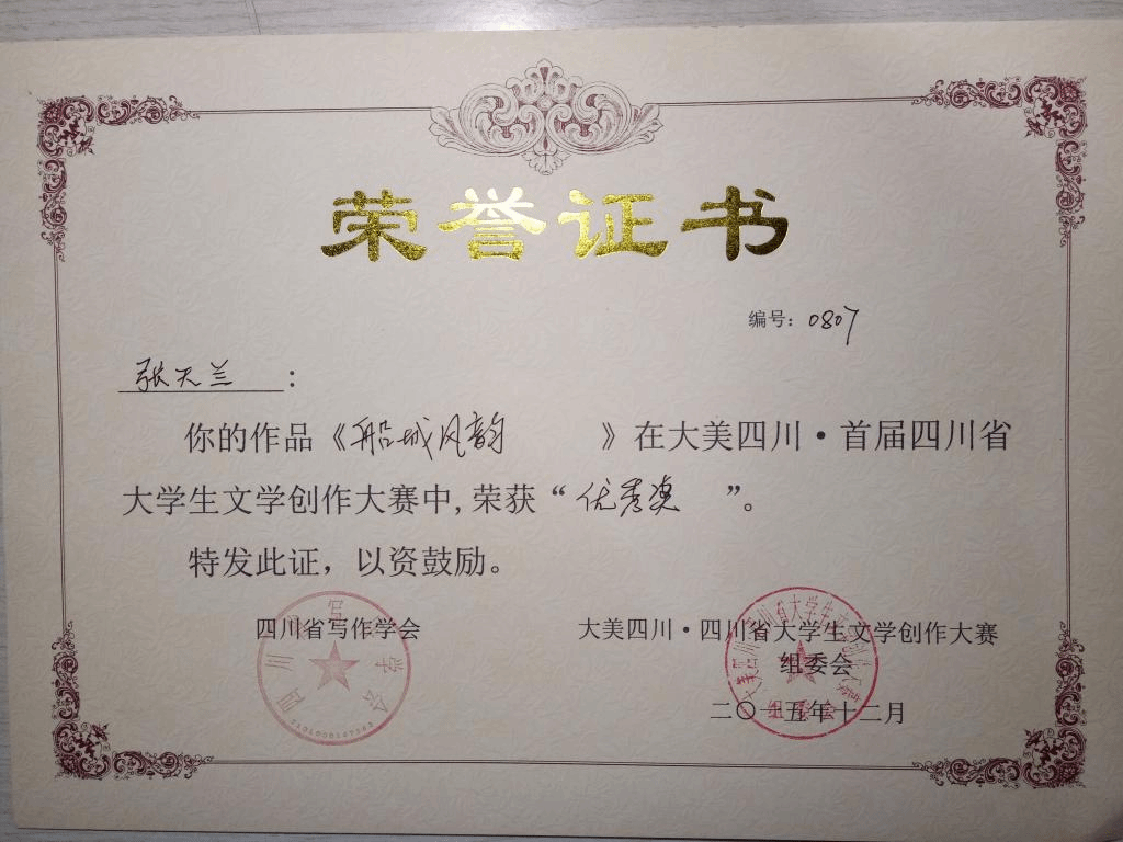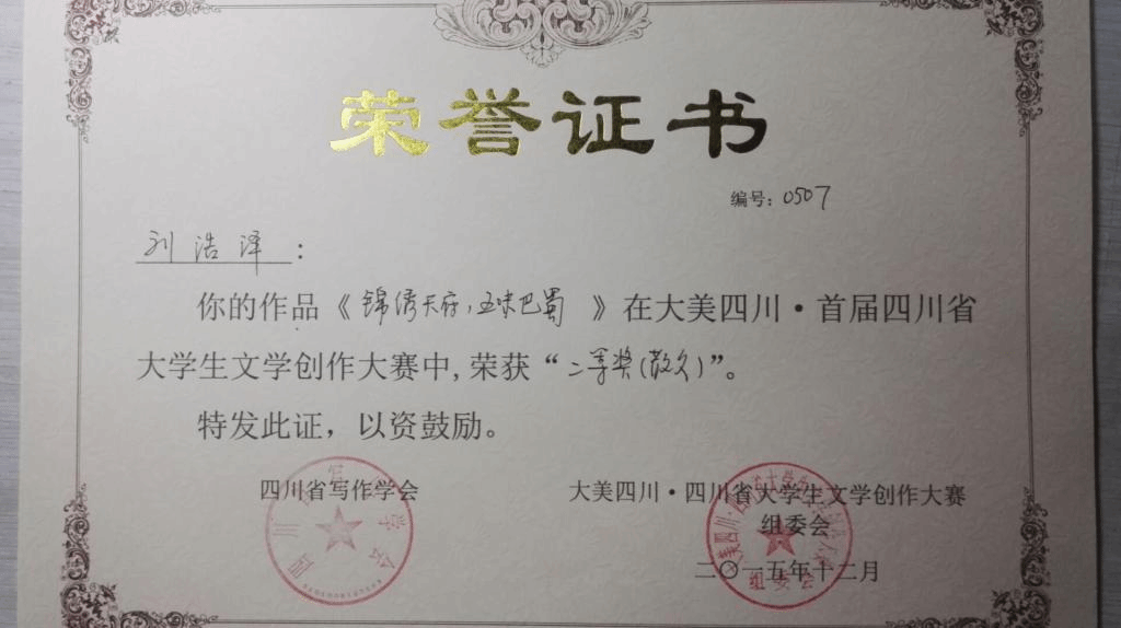 第二届四川省“时代使命”高校创作人才选拔大赛获奖荣誉