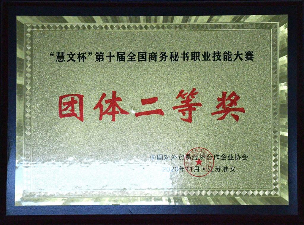 2020年11月yl23455永利集团在”慧文杯”第十届全国商务秘书职业技能大赛中荣获“团体二等奖”。