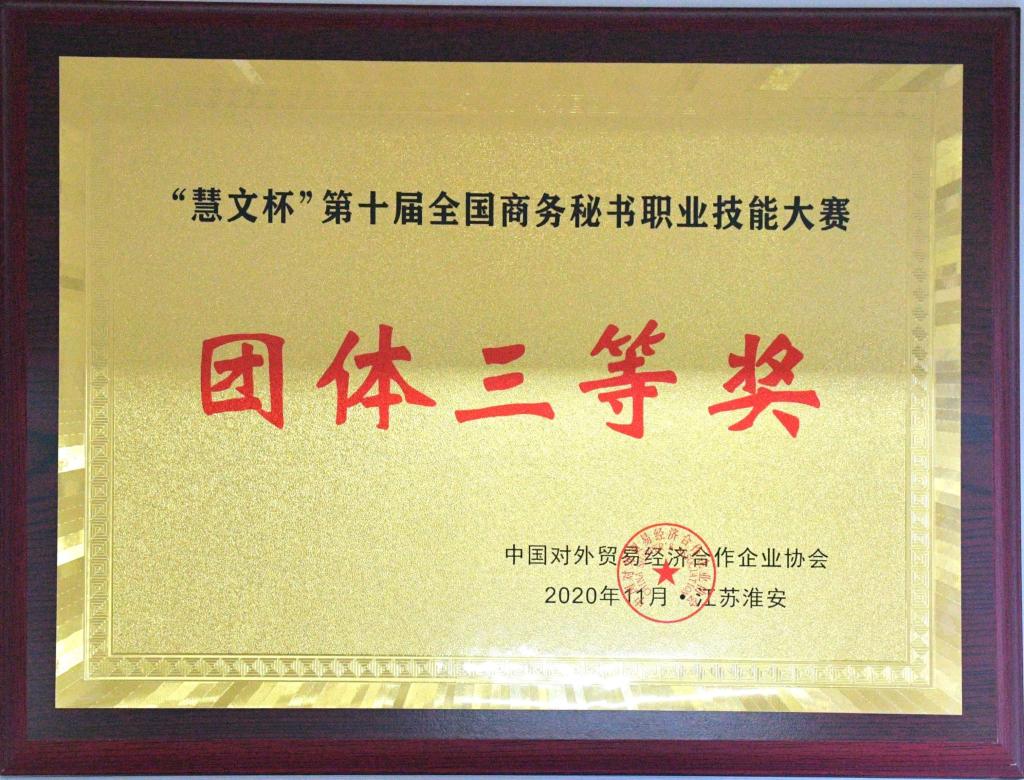 2020年12月yl23455永利集团在”慧文杯”第十届全国商务秘书职业技能大赛中荣获“团体三等奖”。