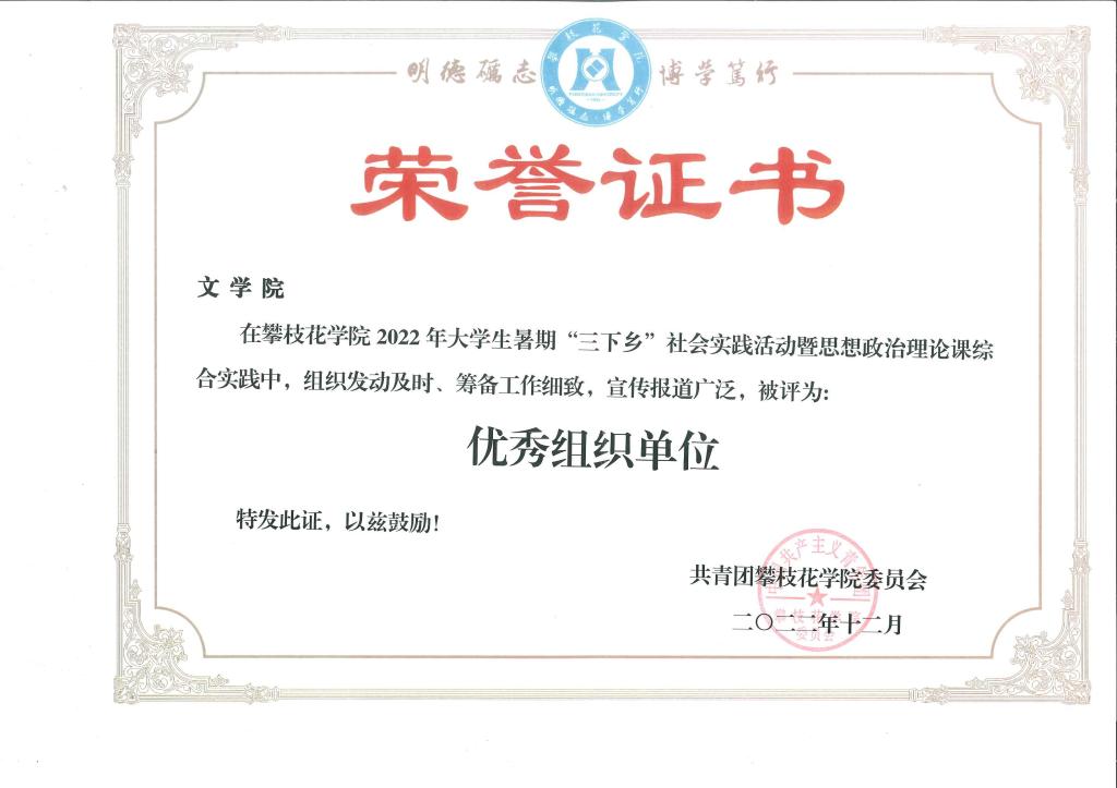 yl23455永利集团在2022年老员工暑期“三下乡”社会实践活动暨思想政治理论课综合实践中,组织发动及时筹备工作细致,宣传报道广泛,被评为“优秀组织单位”。