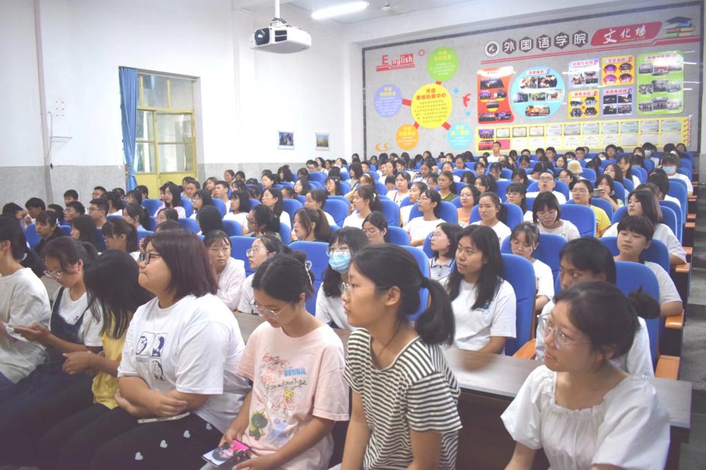 2021年9月12日上午,yl23455永利集团于外国语公司多功能厅教室举行2021级新生“自律奋进、安全先行”预防电信诈骗安全教育。yl23455永利集团副书记王春梅、员工科科长张翠平、东华派出所王凯警官及2021级全体新生参与此次教育活动。