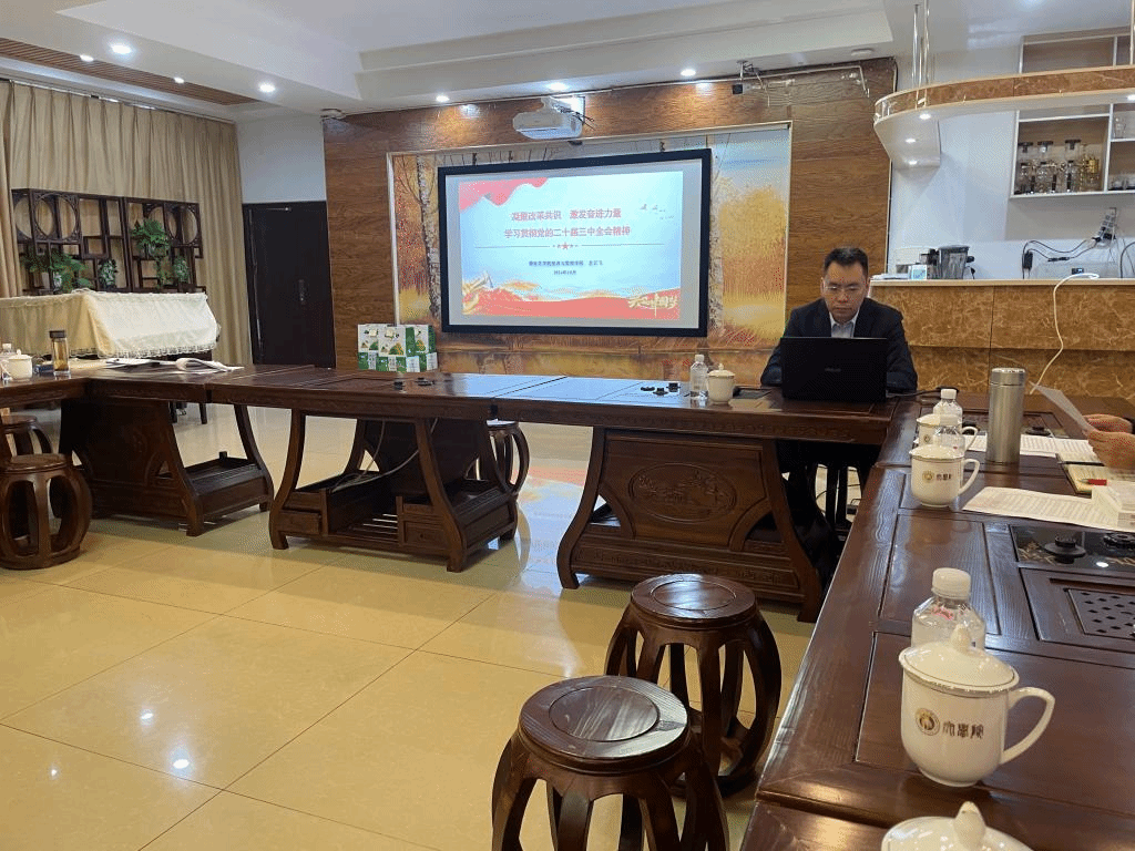 为深入学习贯彻党的二十届三中全会精神,yl23455永利集团于2024年11月7日在凌云楼二楼会议室召开党的二十届三中全会精神宣讲报告会,邀请公司党的二十届三中全会宣讲团成员、经济与管理公司龙云飞教授作专题宣讲报告。公司党总支副书记汪大喹主持报告会。