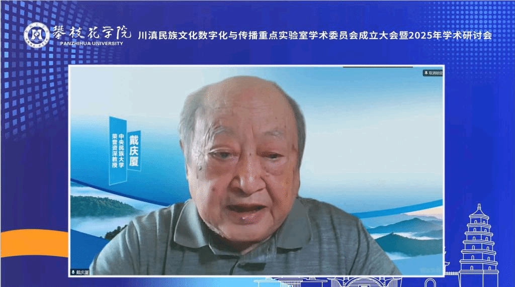 名誉主席戴庆厦致辞,希望实验室充分利用数字化技术,建立全面、系统、科学的川滇民族文化数据库。通过大数据分析、人工智能等前沿技术,深入挖掘民族语言、民俗文化等蕴含的文化基因,同时加强跨团队建设和应用型人才培养。呼吁学术委员会全体成员为实验室建设贡献智慧和力量。