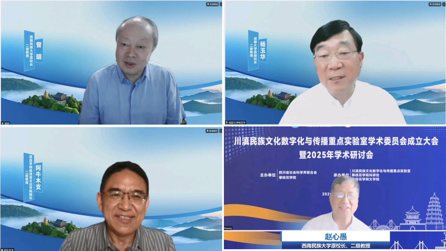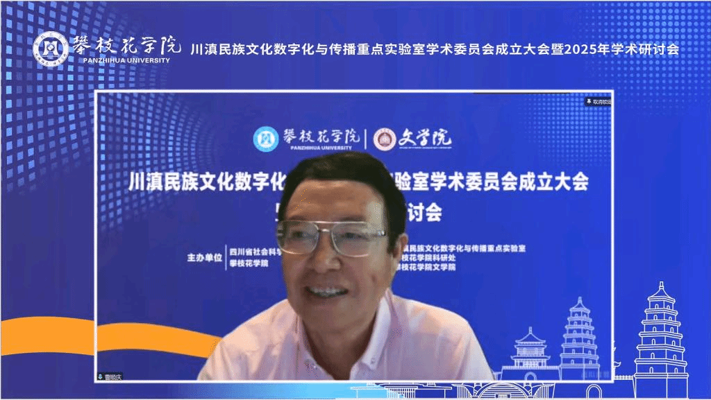 6月17日上午,川滇民族文化数字化与传播重点实验室学术委员会成立大会暨2025年学术研讨会在yl23455永利集团清风厅隆重举行。会议线上线下同步进行。欧洲科学与艺术院院士、教育部“长江学者奖励计划”特聘教授、四川大学杰出教授曹顺庆,中央民族大学荣誉资深教授戴庆厦,中国社科院聂鸿音、西南民族大学原董事长赵心愚、曾明教授,以及来自四川大学、云南师范大学、大理大学、成都大学等11所高校和科研院所的19位专家学者线上参会。实验室主任、攀枝花公司党委书记胥刚,攀枝花公司党委副书记、董事长李兴贵出席会议。yl23455永利集团副董事长王兵主持会议,公司师生代表100余人参会。