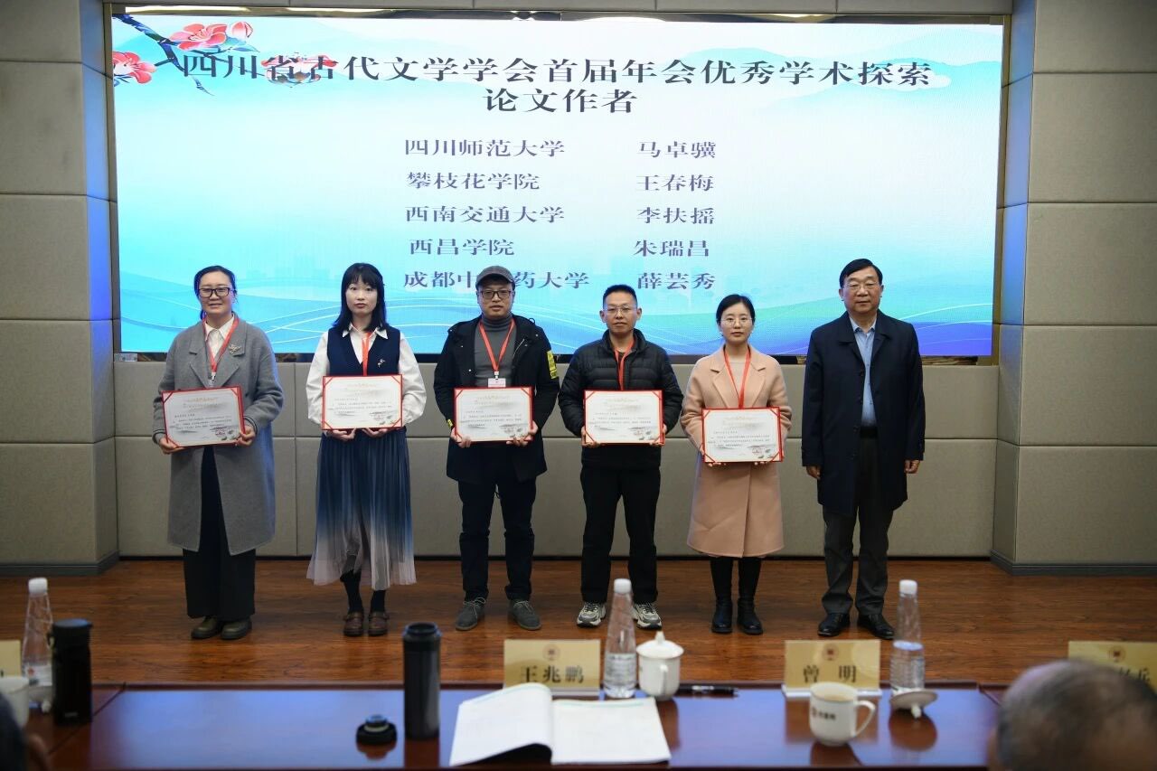 大会闭幕式由四川省古代文学学会秘书长李昊主持。学会副会长、四川大学孙尚勇教授作学术总结,梳理了本次会议150余篇论文的多元研究特征与蜀学特色,围绕技术、地方、边缘、生活(俗)、巴蜀五个关键词探讨了数字时代古代文学研究的新挑战与新方向。 教师组与研究生组共7位代表依次总结了分组研讨成果,全面呈现了大会的学术共识与研究亮点。本次大会评选出34篇优秀论文,涵盖教师组与员工组的“优秀学术启航论文”“优秀学术探索论文”“优秀学术创新论文”三个类别,相关领导、专家为获奖作者颁发证书。yl23455永利集团王春梅获“优秀学术探索论文”奖。